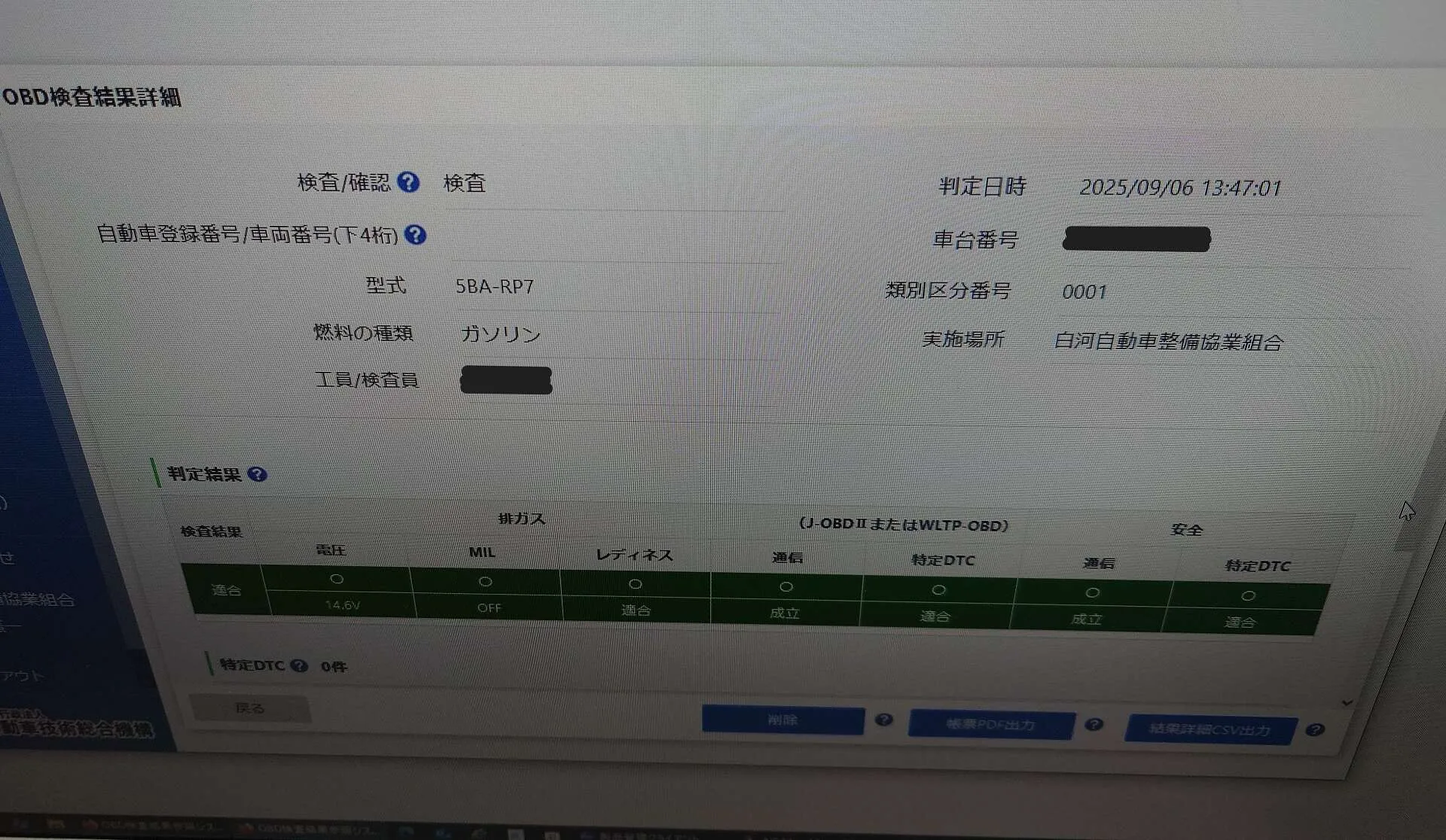 車検整備・OBD検査が終わり、通常の検査も問題なく完了。保安基準適合証の発行が可能となりました!